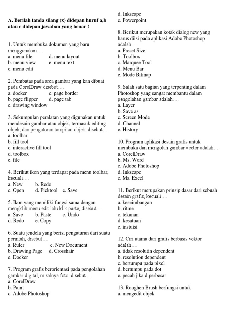 / Soal Dan Jawaban Dasar Desain Grafis Kelas 10 Semester 2 / Soal Uas Desain Grafis Kelas X Pdf : Soal dan jawaban dasar desain grafis kelas 10 semester 2.